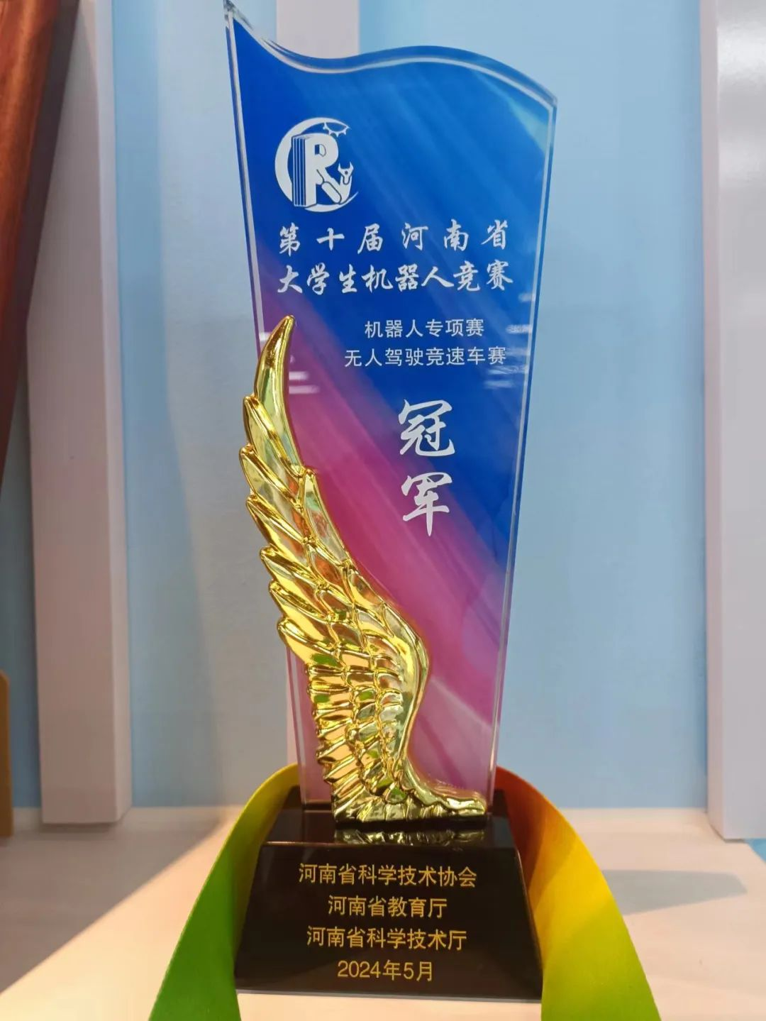河南省大学生机器人竞赛是省级一类竞赛,每年举办一次。大赛积极响应创新创造的时代主旋律,深入贯彻“创新驱动、科教兴省、人才强省”战略,着力培养我省大学生的实践能力、创新能力、协作精神和科学素养,为优秀人才的脱颖而出提供平台。本届大赛共有来自郑州大学、河南大学、河南科技大学、华北水利水电大学等省内83所高校的762支参赛队伍、2200余名选手参加。赛前,春韵队成员柯庆钦、程龙、董儒豪在指导老师张欢庆、方莹的带领下积极训练、刻苦钻研,不断总结经验,做好了充分准备;在比赛中沉着冷静、灵活应对,最终斩获无人驾驶竞速车赛项冠军。
