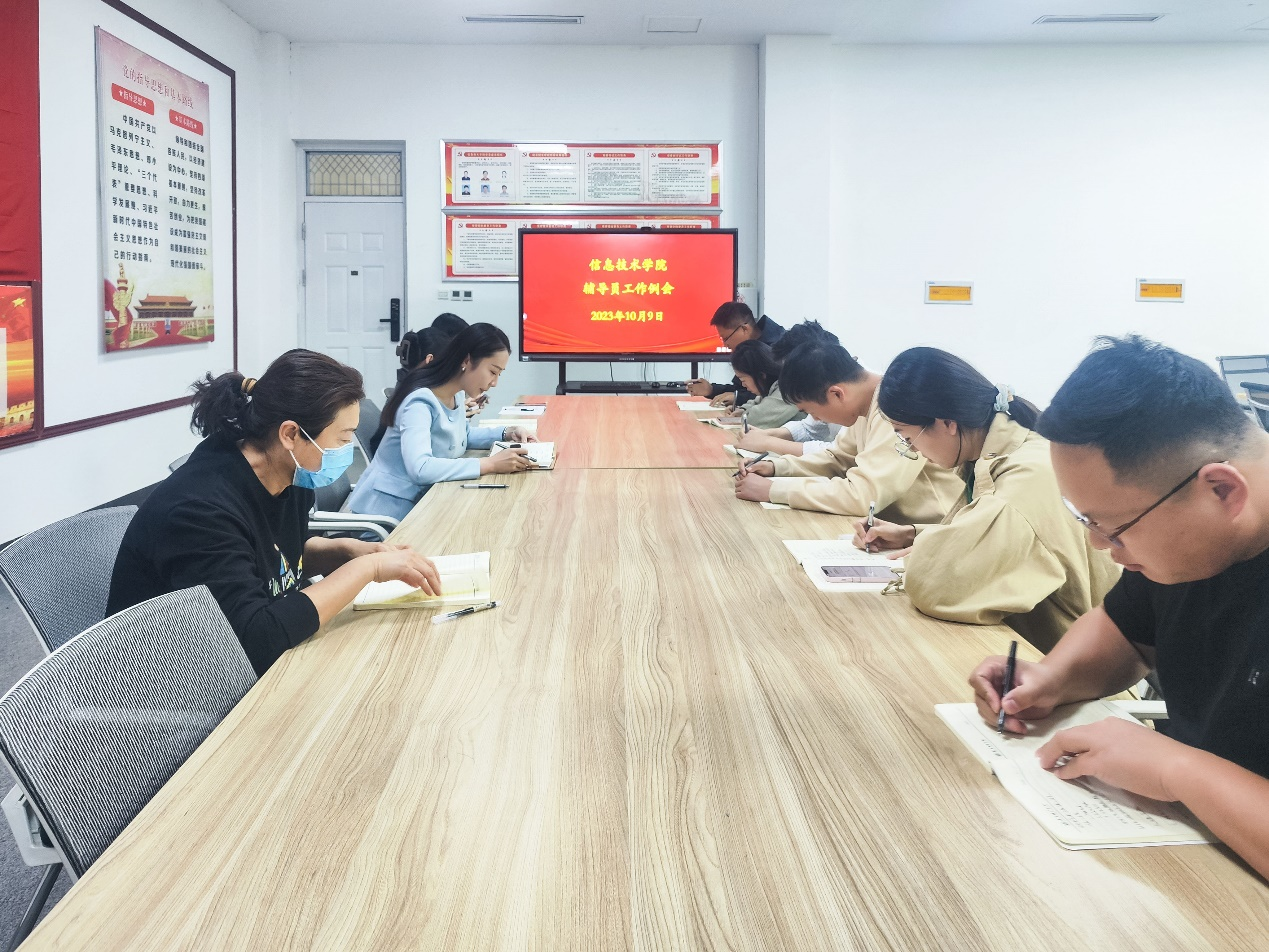 10月9日,beat365在线唯一官网在三商楼112会议室召开辅导员工作例会,党委副书记袁慧、心理健康工作室负责人吴楚和全体辅导员老师参会。
