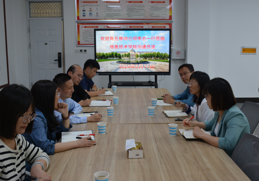 5月11日,商丘移动公司副总经理李家清一行来到beat365在线唯一官网就校企合作进行座谈,beat365在线唯一官网院长王春霞、副院长陈涛等出席座谈会。