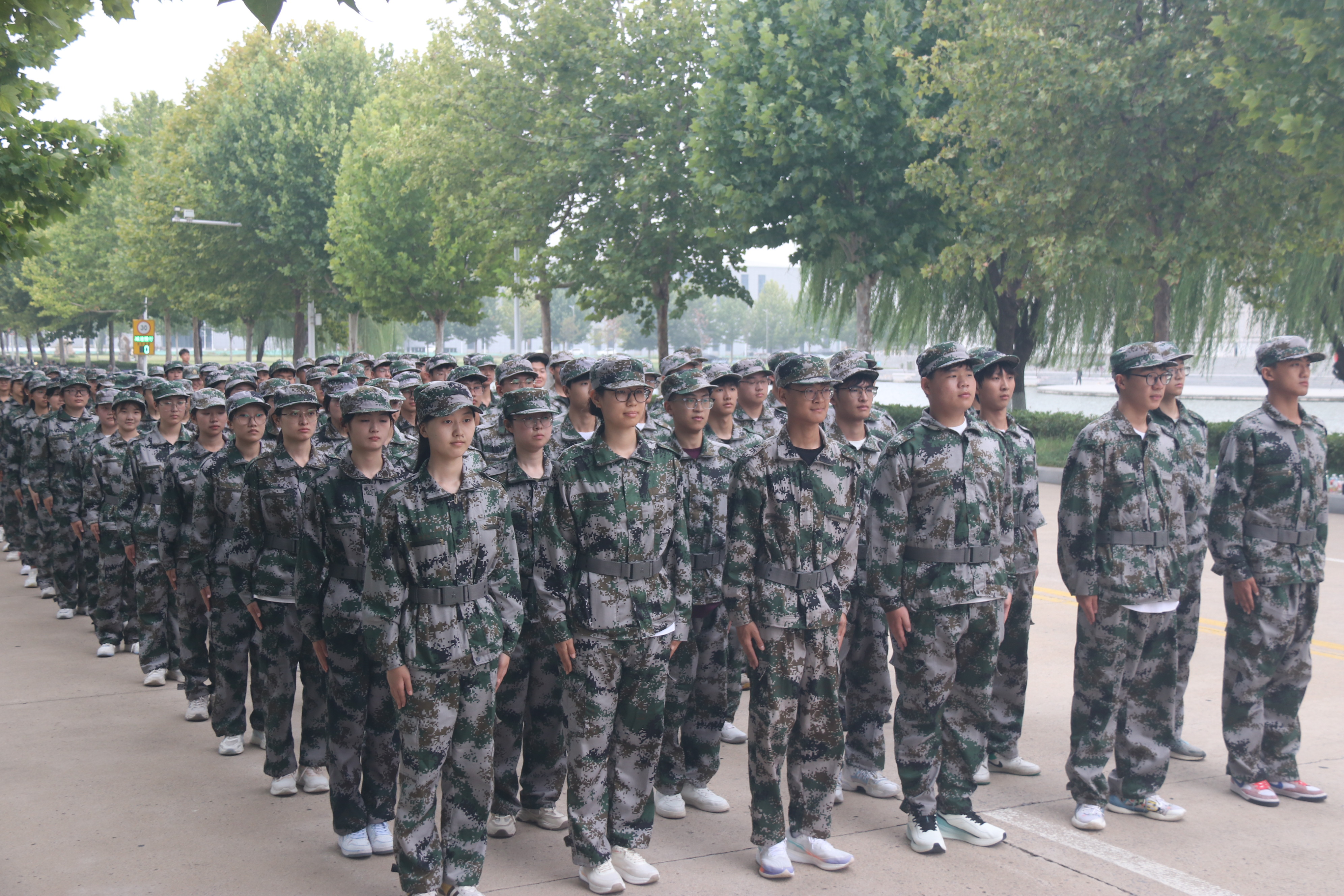 操场上,2024级本科新生身着整齐的迷彩服,个个精神饱满、军姿挺拔、口号嘹亮,充分展现了新时代大学生的青春风范和广大学子昂扬向上的精神风貌。