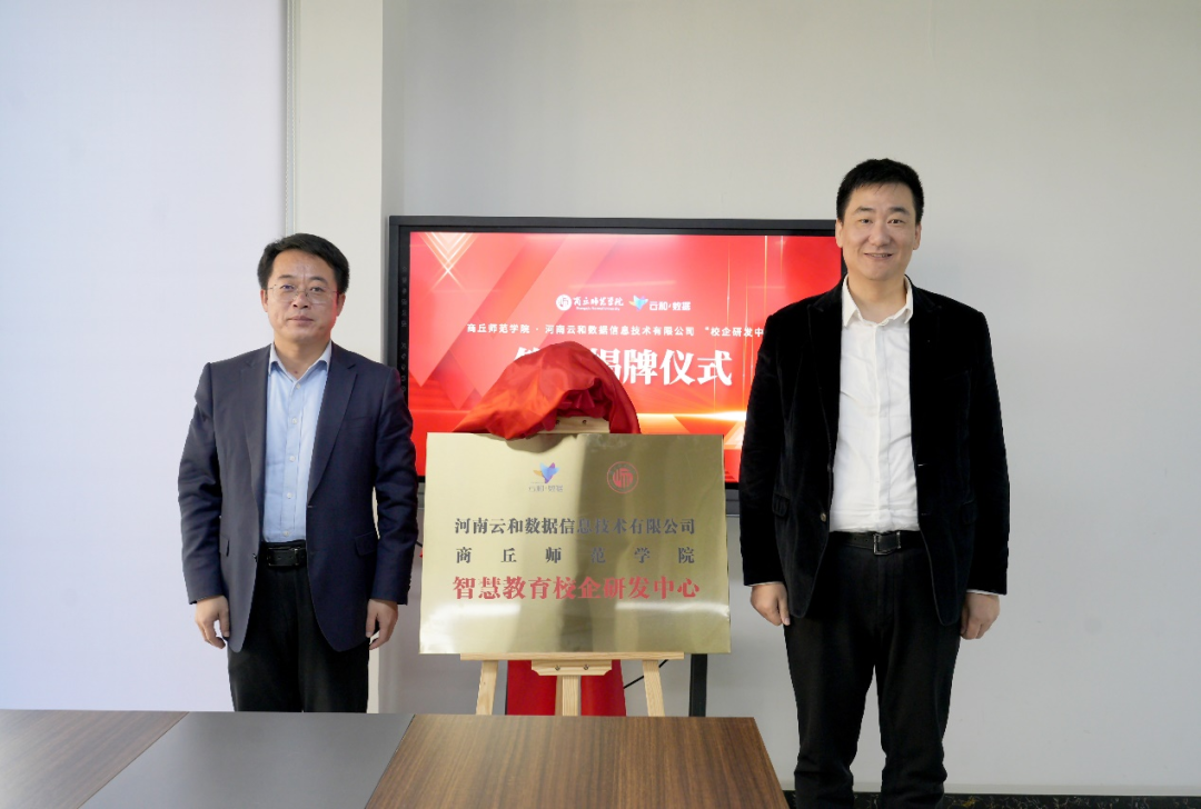 仪式上,翟滨和郭凯签订了校企共建研发中心合作协议,并为“智慧教育校企研发中心”揭牌。
