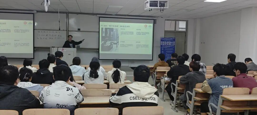 活动紧扣“高水平安全护航高质量发展”核心精神,主讲人结合典型案例,深入解读人工智能安全治理框架、数据合规治理等前沿议题,通过展示当年发生的三大网络安全事件,深入引导学生主动思考应对策略,形成良好引导作用。