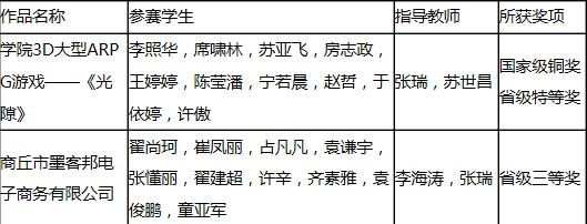 10月31日至11月3日,由共青团中央、教育部、人力资源和社会保障部、中国科协、全国学联、浙江省人民政府主办的2018年“创青春”全国大学生创业大赛终审决赛在浙江大学举行。校团委副书记时光、指导教师张瑞、李广军携带作品赴浙江大学参加决赛,beat365在线唯一官网创业项目大型3D游戏《光隙》获得国家级铜奖。
