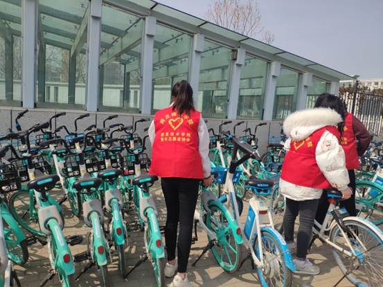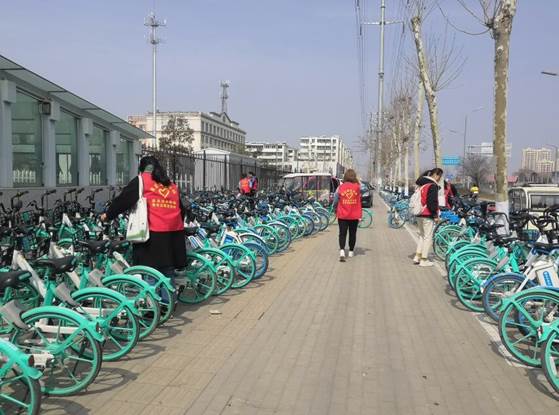 在活动过程中,志愿者对随意摆放的共享单车进行清整。将占道、乱停乱放的共享单车归位,确保路段清洁有序,以实际行动践行雷锋精神,同时为附近居民的出行提供了便捷。经过一个多小时的努力,志愿者们将共享单车整理完毕。