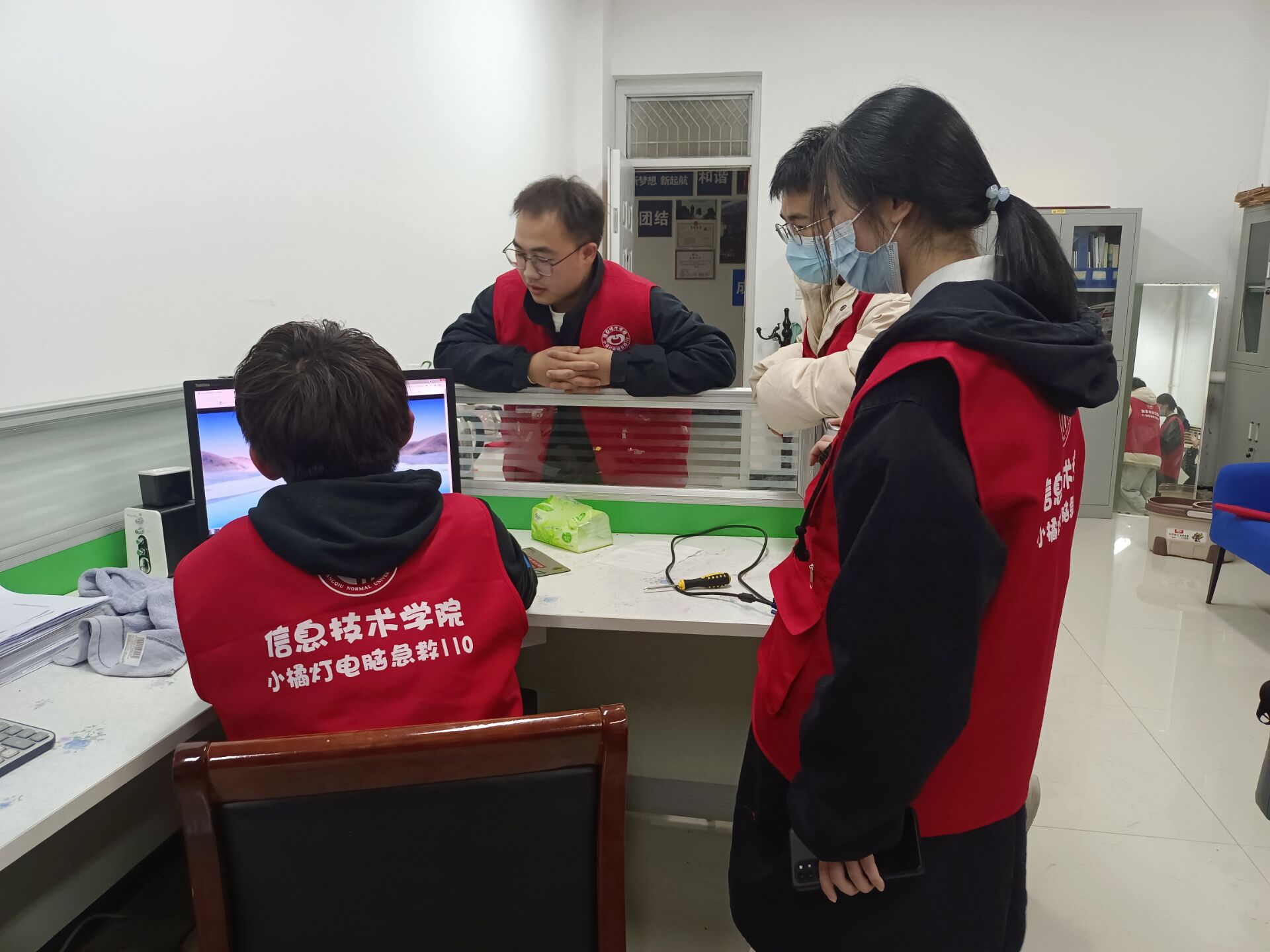 12月3日,beat365在线唯一官网“小橘灯”电脑急救110工作室来到梁园校区学生宿舍为学生解决电脑方面的困扰。