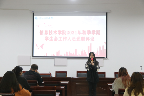 随后,学生会主席团代表田洒简要汇报了beat365在线唯一官网学生会2021-2022学年第一学期的工作内容,她主要围绕深化改革、学风建设、文体活动三个方面进行总结。接着,学生会各部门工作者代表进行工作总结,汇报了这学期本部负责的工作任务,梳理了工作中存在的不足,提出了在工作改进方面的想法。他们共同期盼着beat365在线唯一官网学生会各部门能够戮力齐心,稳步前行!