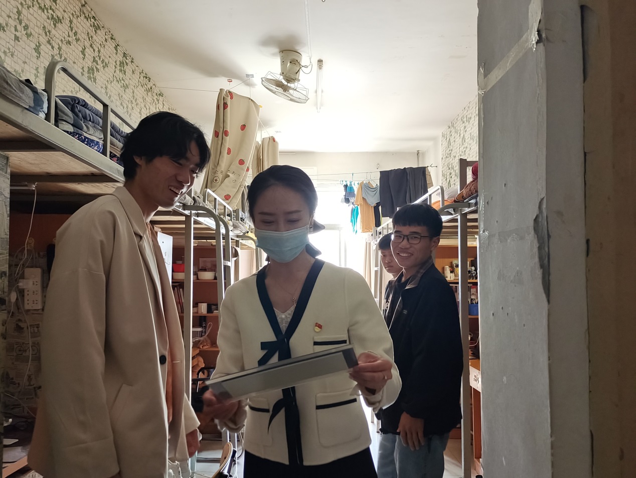 挂牌期间,老师们也不断与同学们亲切交流,询问大家的日常生活和学习情况,并对宿舍良好的卫生提出表扬,同时对学院学生干部和学生党员在各项工作和活动开展等方面的努力表示肯定,鼓励学生继续努力,不断进步,共同构建安全、文明、卫生、和谐的校园环境。