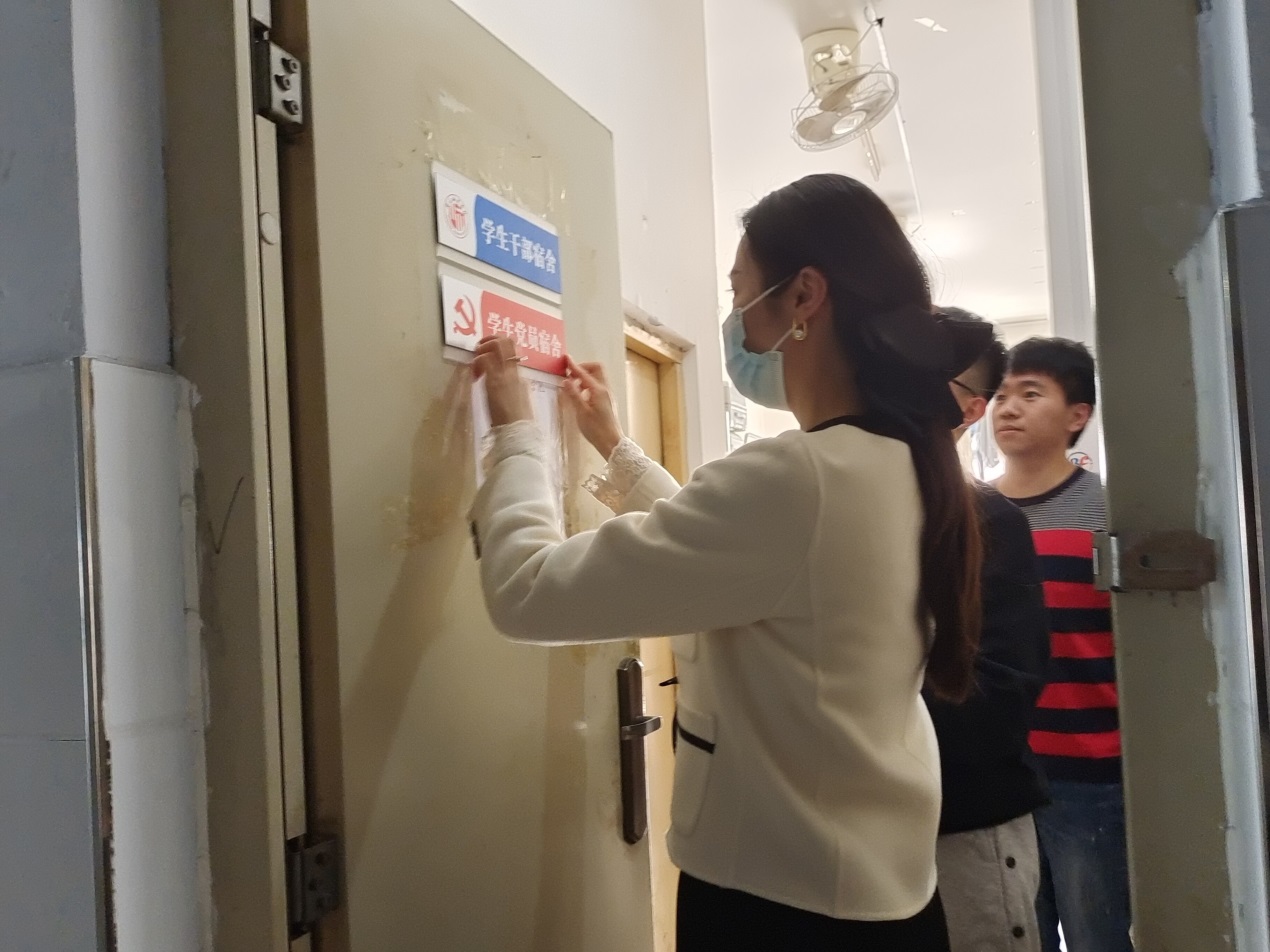 3月29日,beat365在线唯一官网党委副书记袁慧一行来到学生宿舍为学院党员和学生干部宿舍挂牌,激励学生在以后的生活和学习当中要以身作则,勇于担当,发挥党员和学生干部的先锋模范带头作用,以实际行动助力学校学院发展,践行青春誓言。
