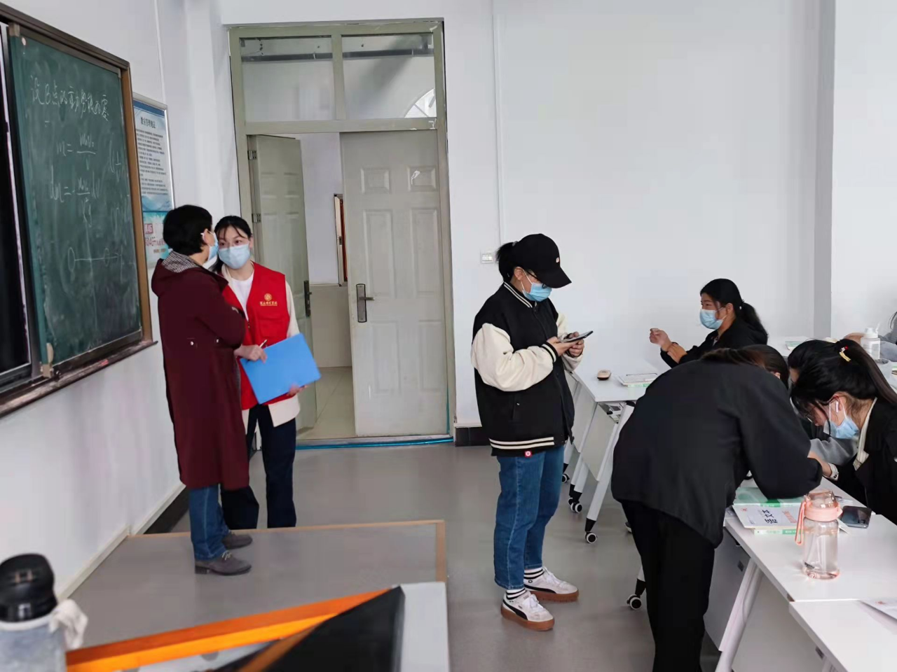 督导团成员课前二十分钟进入班级, 统计并核对出勤、迟到人数,帮助学生规范自身行为,做到不迟到、不早退。同时,督导团成员通过与老师的交流,了解学生的学习情况及课堂效果,听取任课教室的意见和建议。另外,督导员们提醒各班学生:上课期间也要记得佩戴口罩,严格遵守学校的疫情防控要求。
