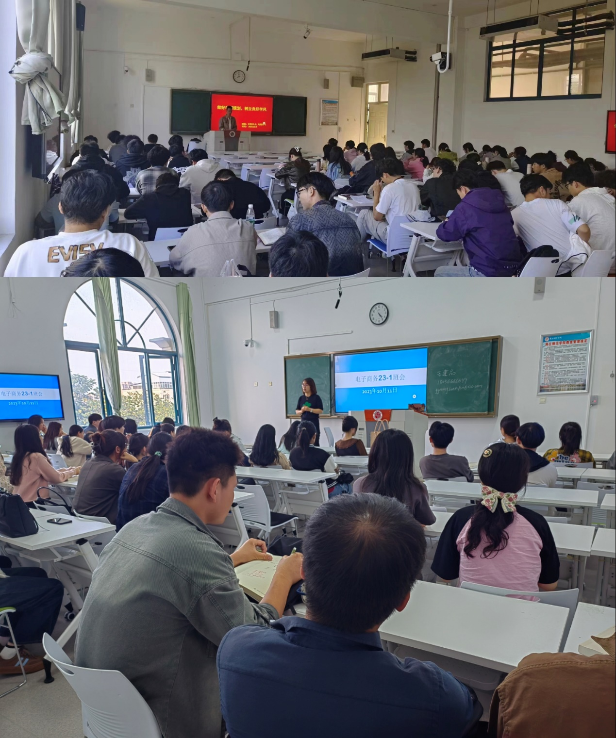 各年级班主任老师强调要树立正确的世界观,人生观,价值观,学习上要有良好的心态,并且对待学习要执着坚持。在学习中,要扎实增强专业知识,告诫学生要有从小目标到大目标的转换,积少成多。同时,叮嘱同学们在“勤学”的同时要坚持“修德”,坚守诚实守信的基本道德,兼备能力与态度,有目标,有志气,经得起打击,不要惧怕挫折,肯吃苦耐劳。