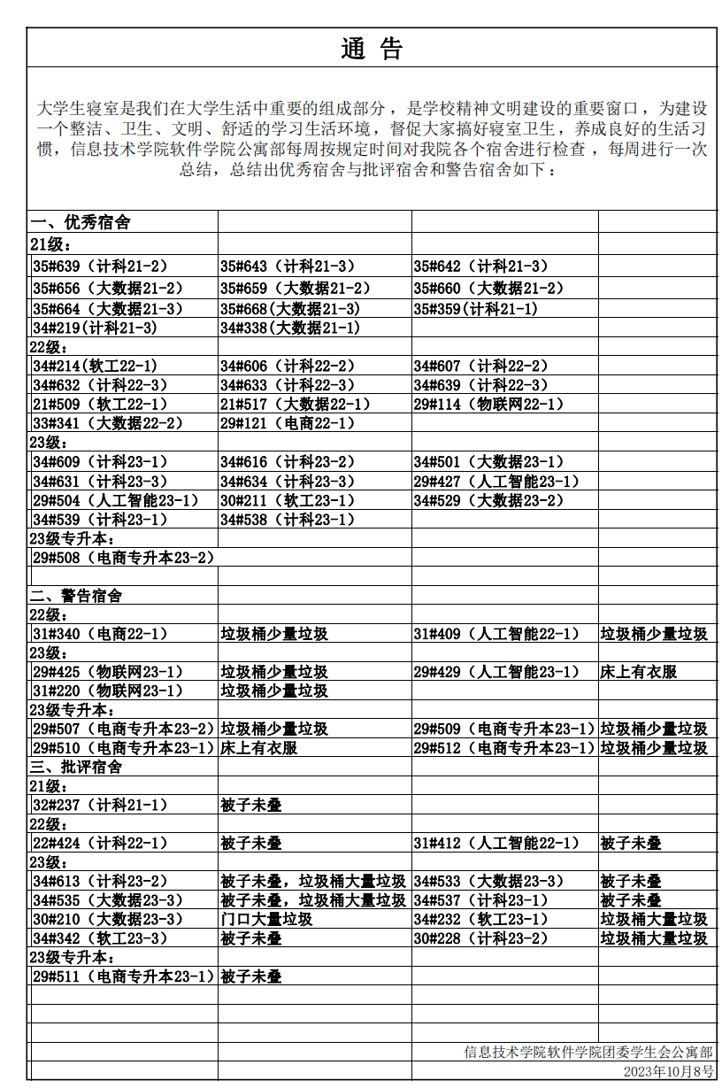 为营造安全、文明、卫生、舒适、和谐的宿舍环境,助力学院学生全面成长,10月8日,beat365在线唯一官网团委学生会公寓部按时对全院学生宿舍进行巡查,现将巡查结果公布如下。同时也请大家共睹优秀宿舍的风采!!!