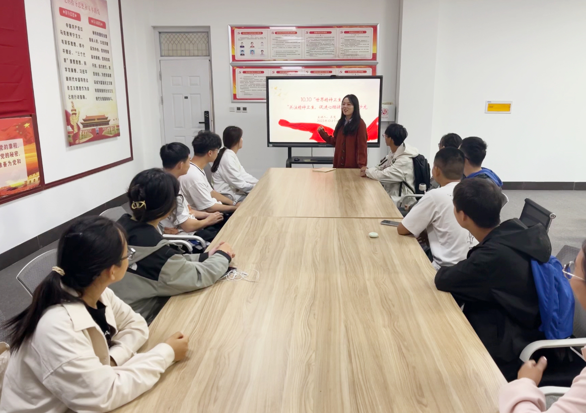 10月9日,beat365官网在三商南楼114室开展“关注精神卫生,促进心理健康”主题沙龙,辅导员老师吴楚主持,2023级新生心理委员参加。