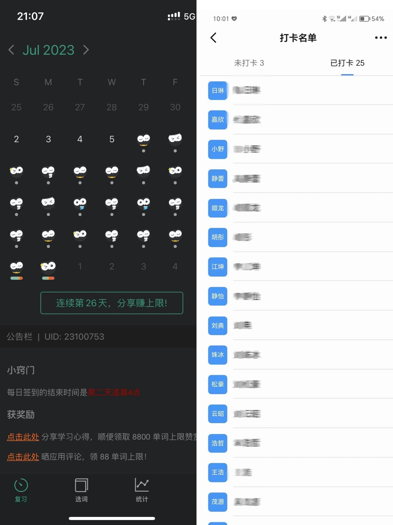 由各班自行商议选定适合本班学情英语学习小程序,鼓励同学们相互监督,相互鼓励。打卡活动的开展,帮助同学们培养良好的英语学习习惯,同时创造了共同努力的班级学习氛围。在暑假结束之后每班也会根据打卡情况推选五名学生作为“暑期学习之星”,学院将对这些同学进行表彰