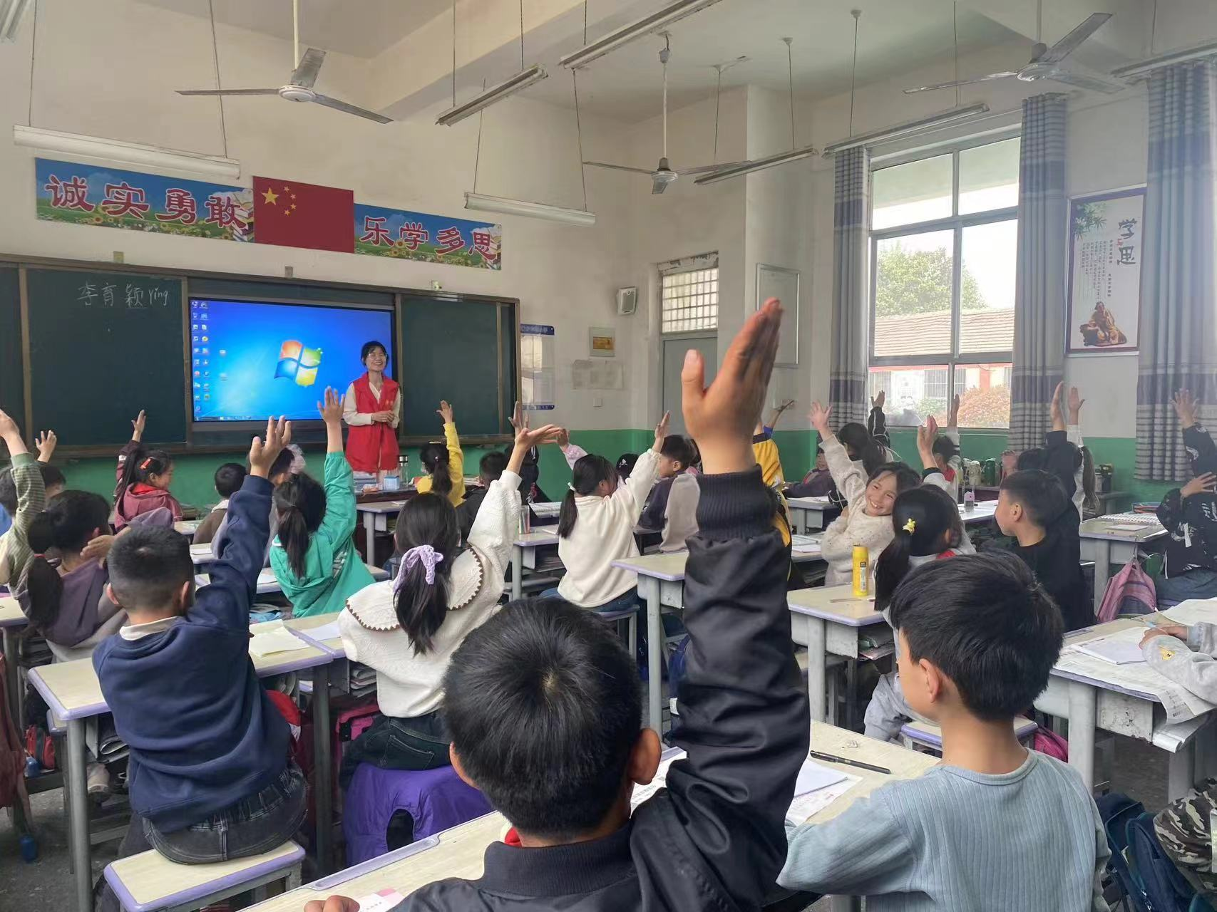 在张彭小学支教过程中,志愿者们将思政教育与科学课程相融合,培养孩子们爱国主义精神,激发他们对科学技术的兴趣与探索精神,实现思政教育中知识传授与价值引领融合。