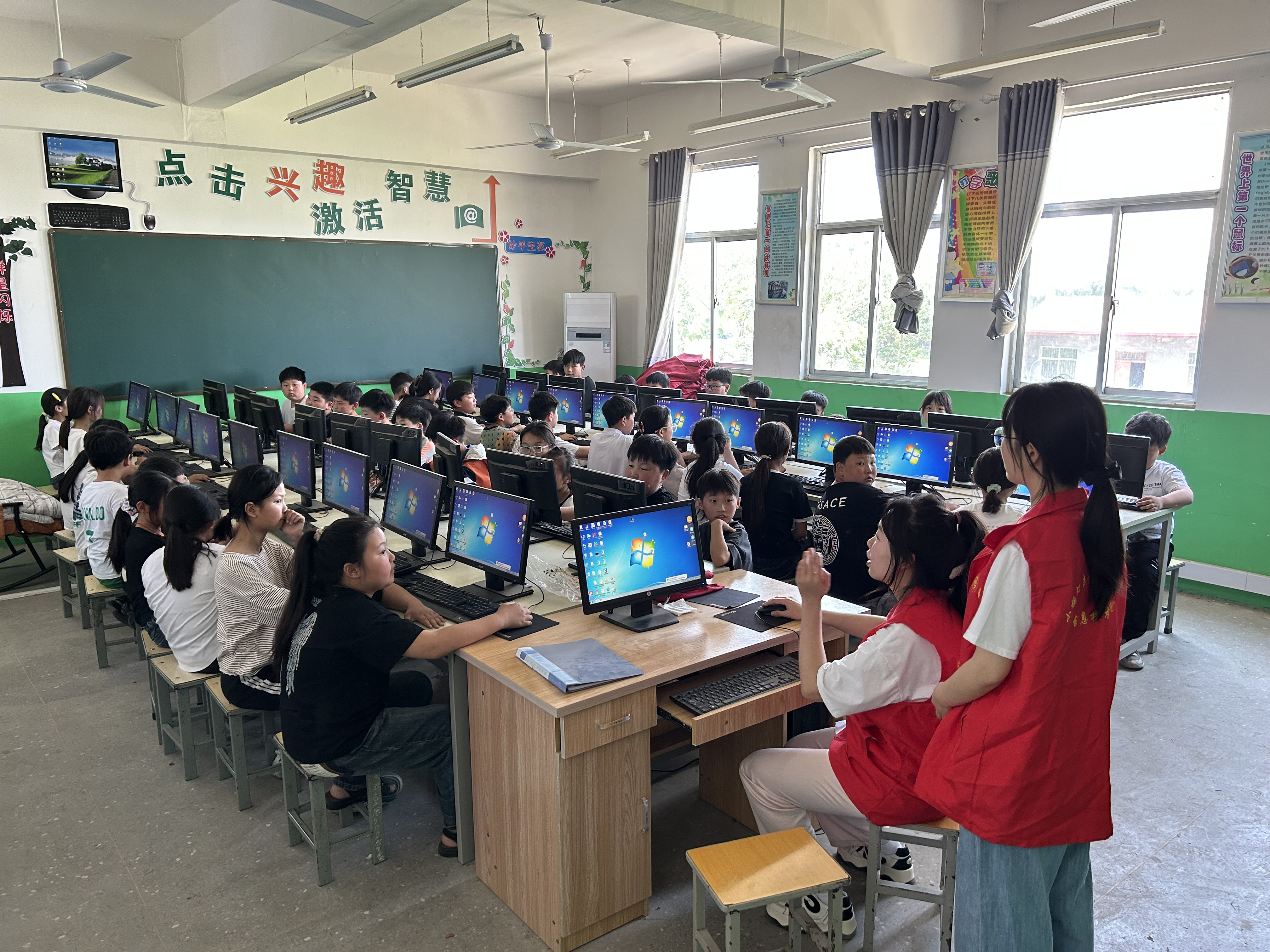 在中陈小学支教过程中,志愿者们通过生动有趣的互动教学方式开展了计算机基础知识课程,将复杂的编程概念转化为简单易懂的语言,让孩子们在动手实践中体验到编程的乐趣。一张张稚嫩的小脸上洋溢着好奇与兴奋,课堂中充满着喜悦的氛围。