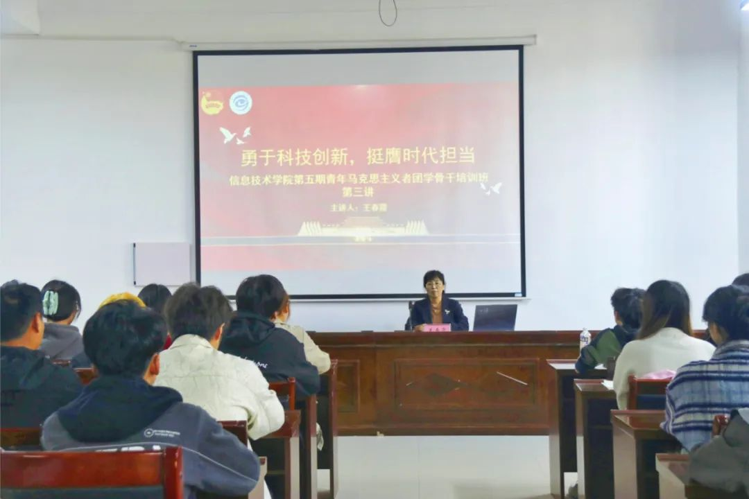 王春霞院长以“勇于科技创新,挺膺时代担当”为主题,从专业学习和个人成长展开培训,鼓励同学们要肩负时代使命,确立高远志向,夯实专业知识,把握发展契机,以科技创新锚定科技强国战略目标,将个人成长主动融入国家发展大局,努力成长为德智体美劳全面发展的社会主义建设者和接班人。