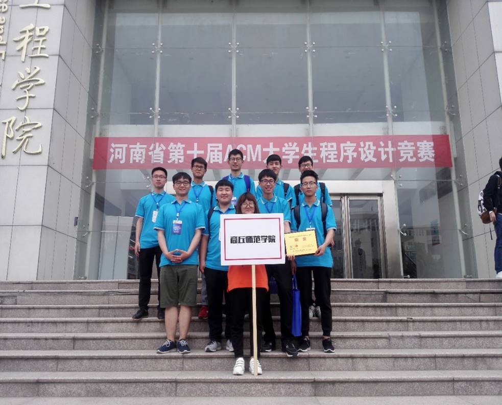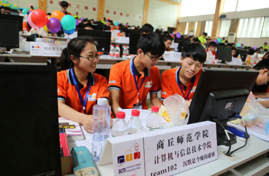 河南省第九届大学生程序设计竞赛在河南大学举行,来自全省五十多所高校176支队伍近600名学生同场竞技。经过现场五个小时的紧张比赛,beat365官网学生彭永顺带领的“妈妈说你们的队名又要很长”队和郭智带领的“沉默是今晚的康桥”队均获得铜奖。