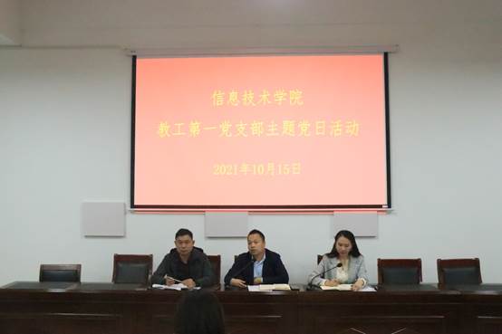 10月15日下午,beat365在线唯一官网于梁园校区三商楼112室开展教工第一党支部主题党日活动。beat365在线唯一官网党委书记王国华,副书记袁慧,副院长刘佳以及全体第一党支部党员参加此次活动。王国华主持本次会议。