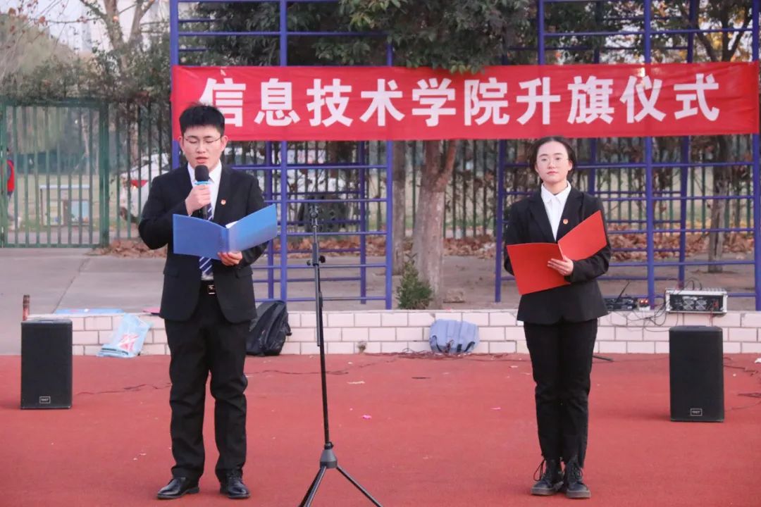 12月6日,beat365在线唯一官网于梁园校区体育场举行“赓续红色血脉,勇担强国使命”升国旗仪式。学生处处长王晓征,学院党委书记王国华,院长王春霞,党委副书记袁慧,副院长方莹、刘佳,全体辅导员及21级全体学生参加了升旗仪式。