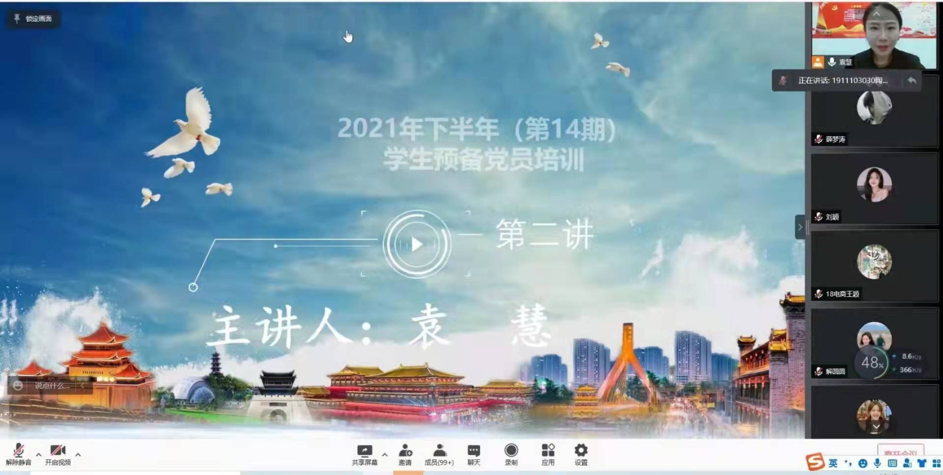 为深入开展党史学习教育,带领学生更好地学习党的光辉历程,增强同学们肩负时代重任的责任感。2021年12月5日,beat365在线唯一官网党委副书记袁慧为2021年下半年第十四期预备党员开展线上党课培训。