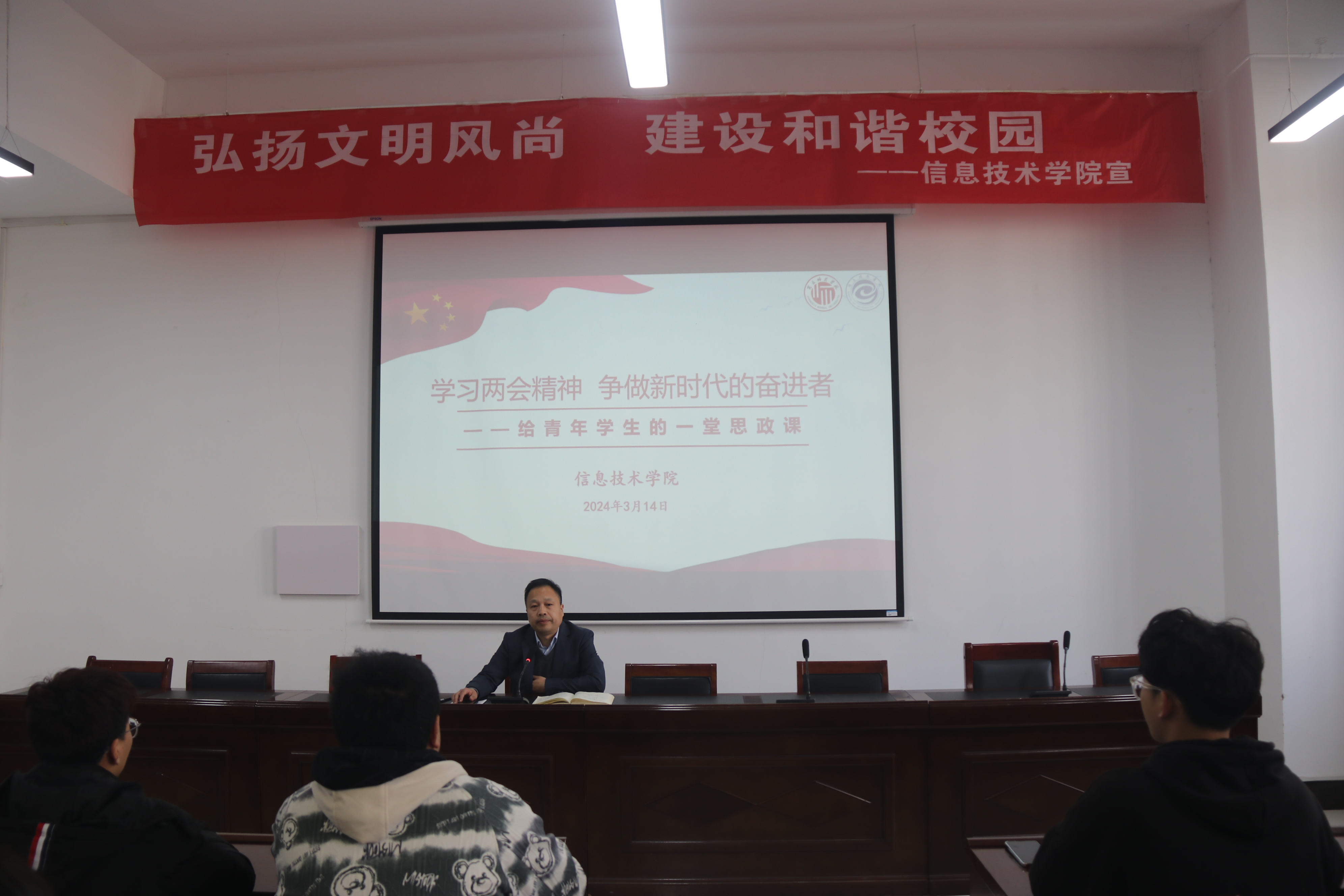 为全面深入学习贯彻全国两会精神,提高青年学生的政治觉悟和思想素质。3月14日,beat365在线唯一官网举办了以“学习两会精神,争做新时代的奋进者”为主题的思政讲座,beat365在线唯一官网党委书记王国华主讲,学院入党积极分子、各年级学生代表参加。