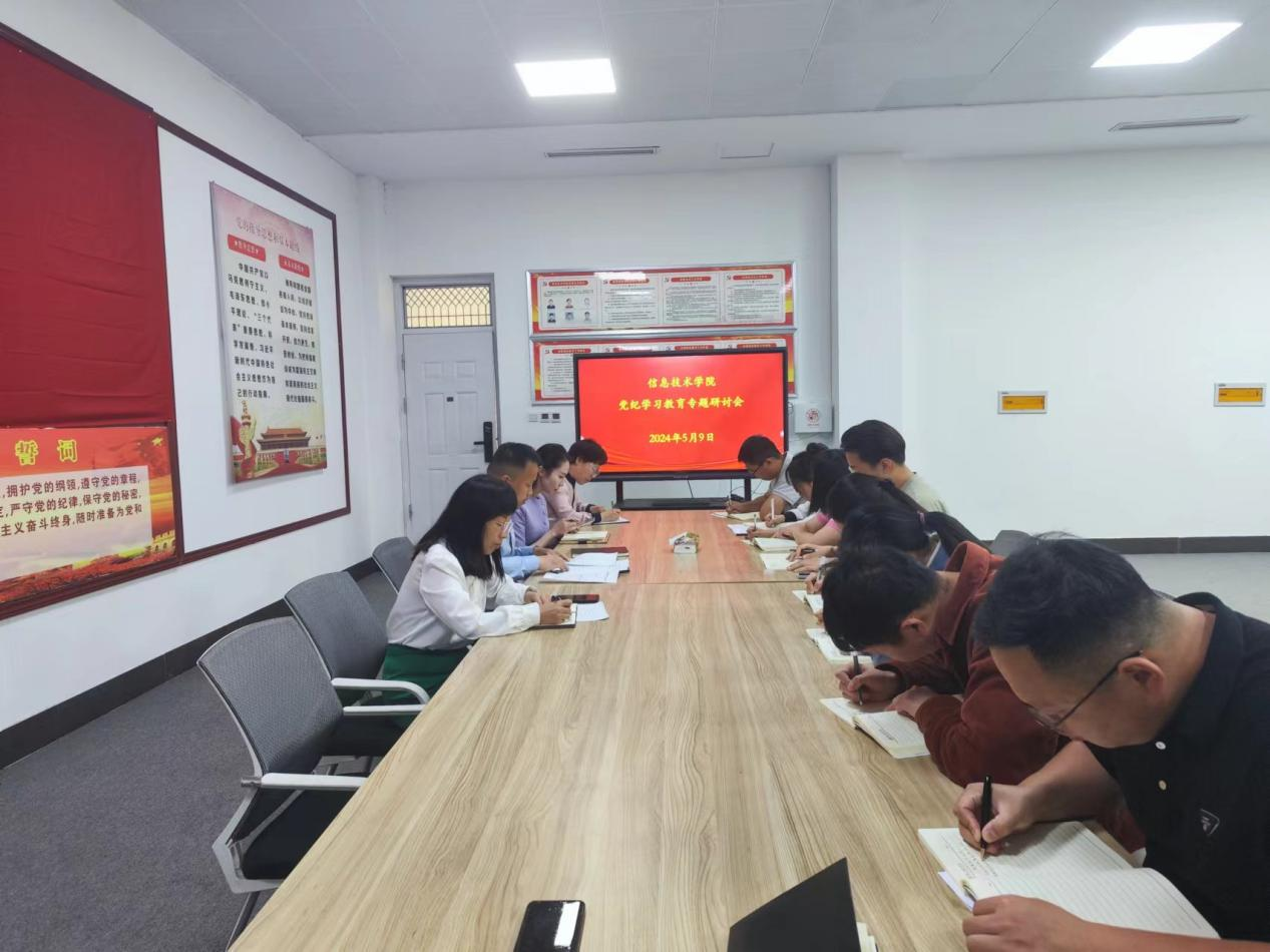 最后,王国华对学院下一阶段的党纪学习教育进行了安排部署。他指出,党纪学习教育是一项非常重要的任务,要求学院全体党员要提高政治站位,聚焦重点内容,认真研读《条例》,深刻领会其主旨要义,结合工作实际开展好党纪学习教育;各党支部要根据学院党纪学习教育计划,围绕学院人才培养、科学研究、科创活动等工作实际扎实开展好“三会一课”主题活动,推动学院党纪学习教育走深走实,助力学院各项工作高质量开展。
