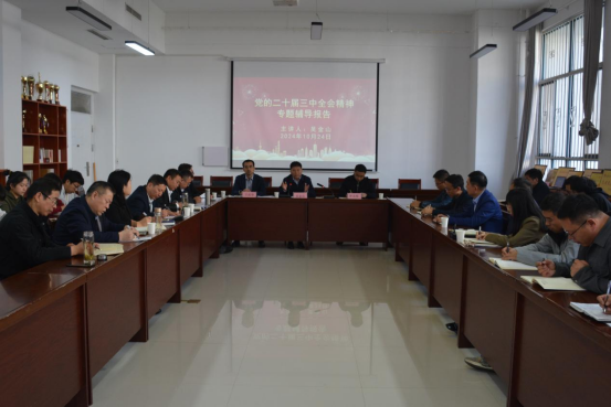 10月24日,校党委副书记吴金山在三商楼112会议室作党的二十届三中全会精神专题宣讲报告。人文学院、beat365在线唯一官网领导班子成员,教师代表、学生代表40余人参加了宣讲会。
