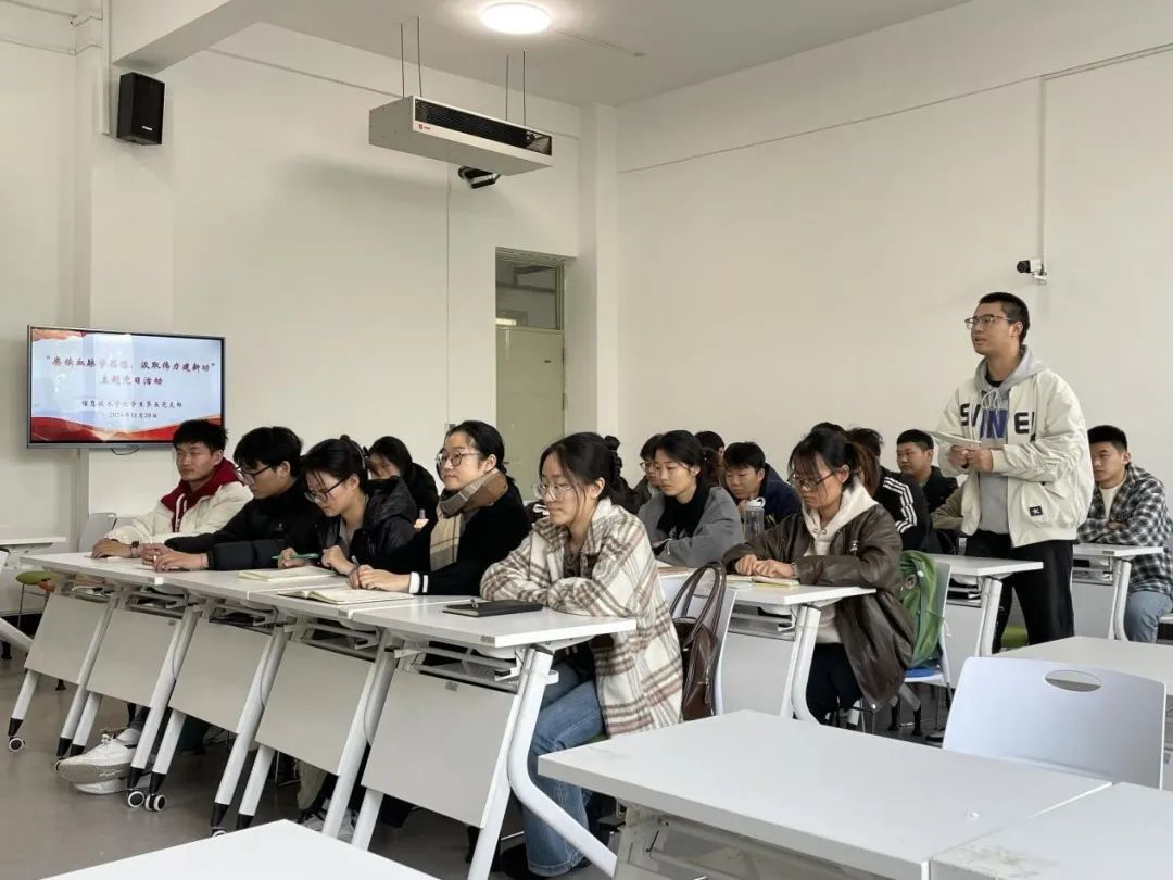 11月20日,beat365在线唯一官网学生第五党支部在行方楼305教室开展“赓续血脉学思想,汲取伟力建新功”主题党日活动,活动由党支部书记吴楚主持,支部全体党员参加。