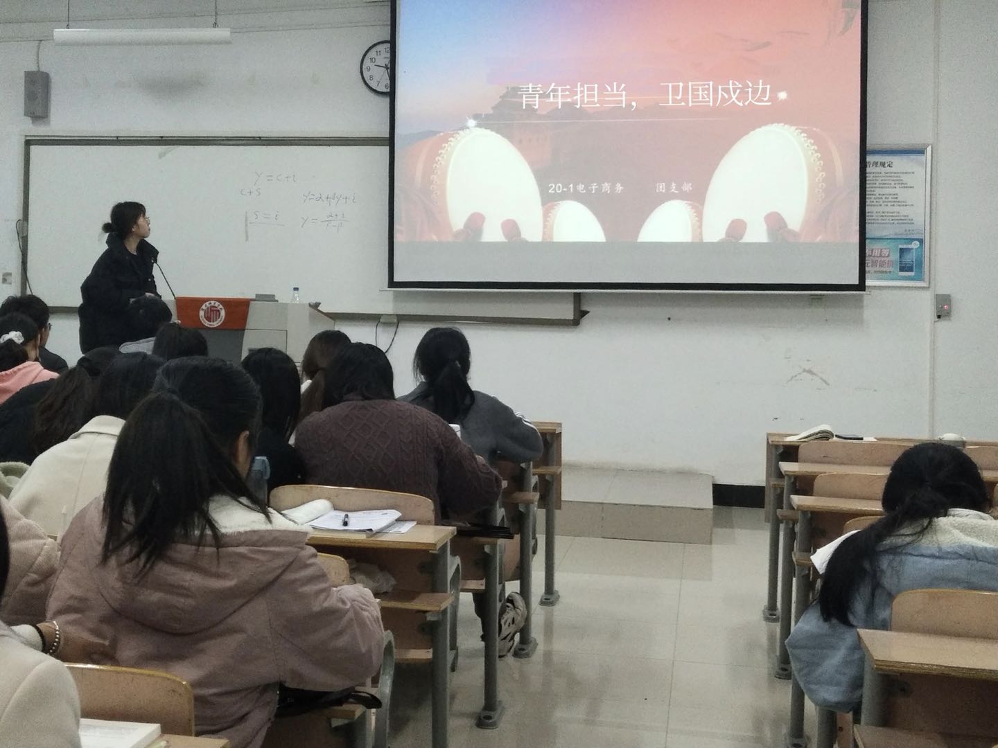 在此次会议之前,各个班级也组织了对卫国戍边英雄事迹的学习,每一位学生都积极参与到其中。在本次会议上,张辉书记首先将喀喇昆仑边境事件以及英雄的日常生活事迹进行了简要的解说,并对官兵们敢于斗争、敢于胜利,展现出誓死捍卫祖国领土的赤胆忠诚和不怕苦、不怕死的精神进行了高度的赞扬。他表示,英雄是时代的杰出代表,因为在他们身上,传承着革命英雄主义的基因,燃烧着爱国主义的热血,他们是当之无愧的新时代“最可爱的人”,是大家学习的榜样。最后,张辉书记希望全体参会人员从英雄的身上汲取宝贵的精神营养,坚定必胜信念,发扬斗争精神,为实现中华民族伟大复兴奋力拼搏。