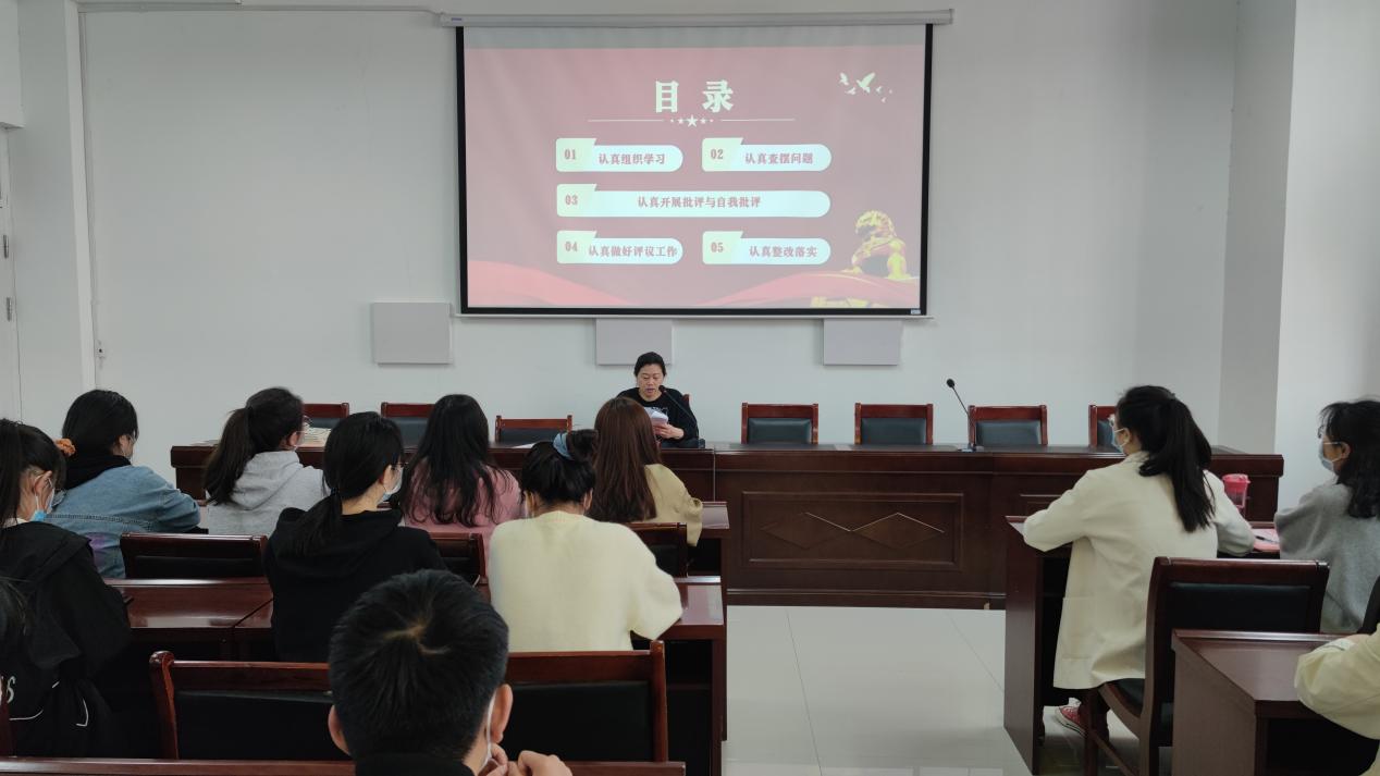 会议严格执行党的生活制度,围绕“认真组织学习”、“认真查摆问题”、“认真开展批评和自我批评”、“认真做好评议工作”和“认真整改落实”5个方面的工作开展。首先,由戴艳传达会议精神,并简要介绍了会议流程。梳理了党支部近一年组织的各类主题党日学习活动,并对支部所存在的问题整改情况作了汇报。