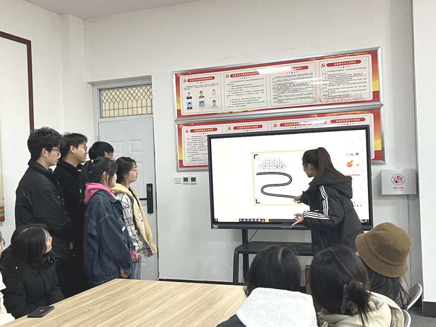 会上,党支部书记吴楚进行领学,带领全体党员深入学习习近平文化思想和习近平总书记关于铸牢中华民族共同体意识的重要讲话精神。 接着,组织大家分组进行“党建图片猜猜猜”活动,同学们通过“看图猜词”和“你划我猜”两种形式进行。 整个活动氛围轻松愉悦又带有一丝紧张,达到了寓教于乐、寓学于乐的效果。