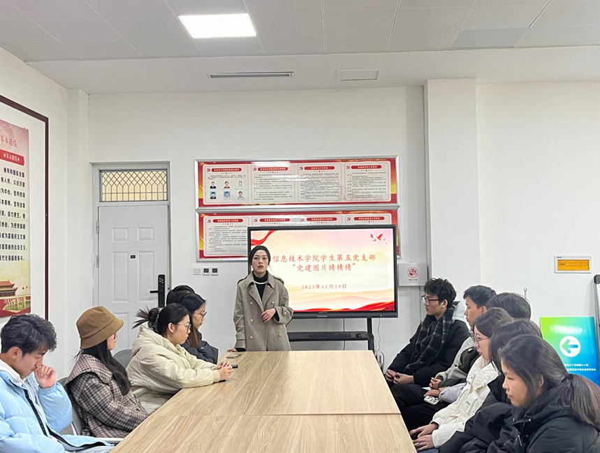 11月23日,beat365在线唯一官网学生第五党支部在三商楼 114 会议室组织开展“党建图片猜猜猜”主题党日活动,党支部书记吴楚、全体党员和部分入党积极分子参加本次活动。