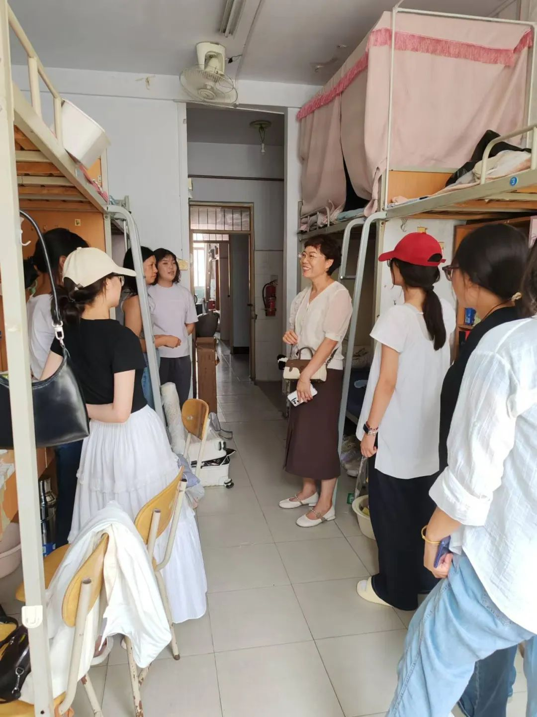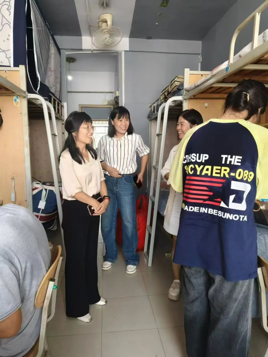 为深入了解2024级新生入学后的适应情况,及时知晓新生需求,帮助新生更好更快地融入新环境。9月8日,beat365在线唯一官网党委书记王国华、院长王春霞、副院长方莹、刘佳、陈涛及全体辅导员老师走访慰问24级新生宿舍。