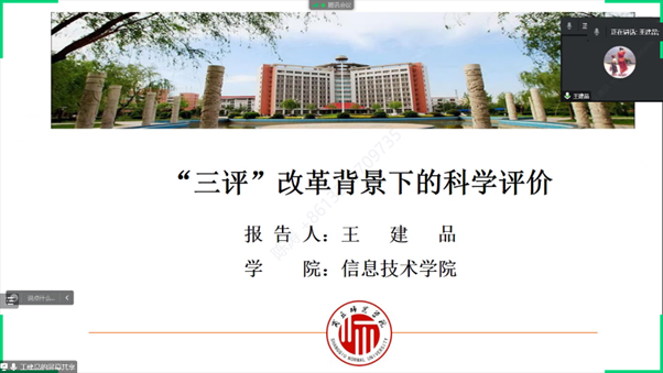 王建品博士做了题为“‘三评’改革背景下的科学评价”的专题报告,王博士首先介绍了我国进行“三评”改革的重要性及实施情况,然后分析了在此背景下进行学术论文卓越影响力评价的必要性,并从评价理论体系、评价指标、评价方法、实证分析等方面进行了阐释,最后提出了当前研究的不足和未来的研究展望。