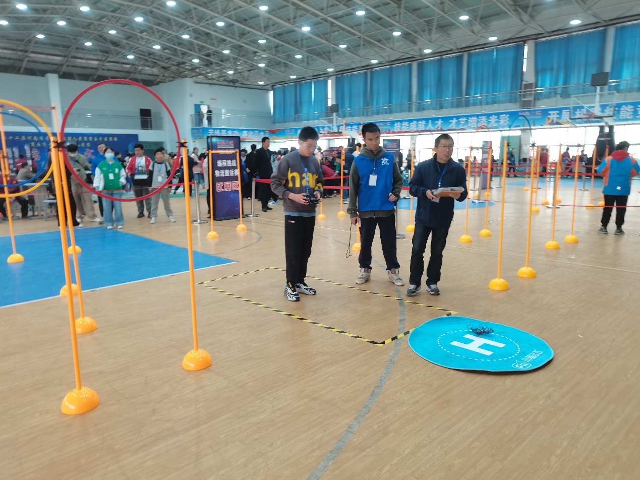 beat365官网柴晓辉老师作为无人机类项目负责人参与此次比赛的筹备和裁判执法工作。应天飞行科技工作室成员朱嘉政、张晨和赵融睿三位同学作为助理裁判,参与旋翼赛个人飞行赛、旋翼赛物流搬运赛、旋翼赛团体接力赛等赛项的执法工作。他们在赛前布置规划赛道,比赛中全神贯注,执法公平、公正,确保比赛顺利进行。