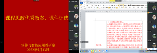 5月13日,软件与智能应用教研室全体教师通过腾讯会议线上开展课程思政优秀教案和课件评选暨学习交流研讨会,会议由教研室主任葛寒松主持。