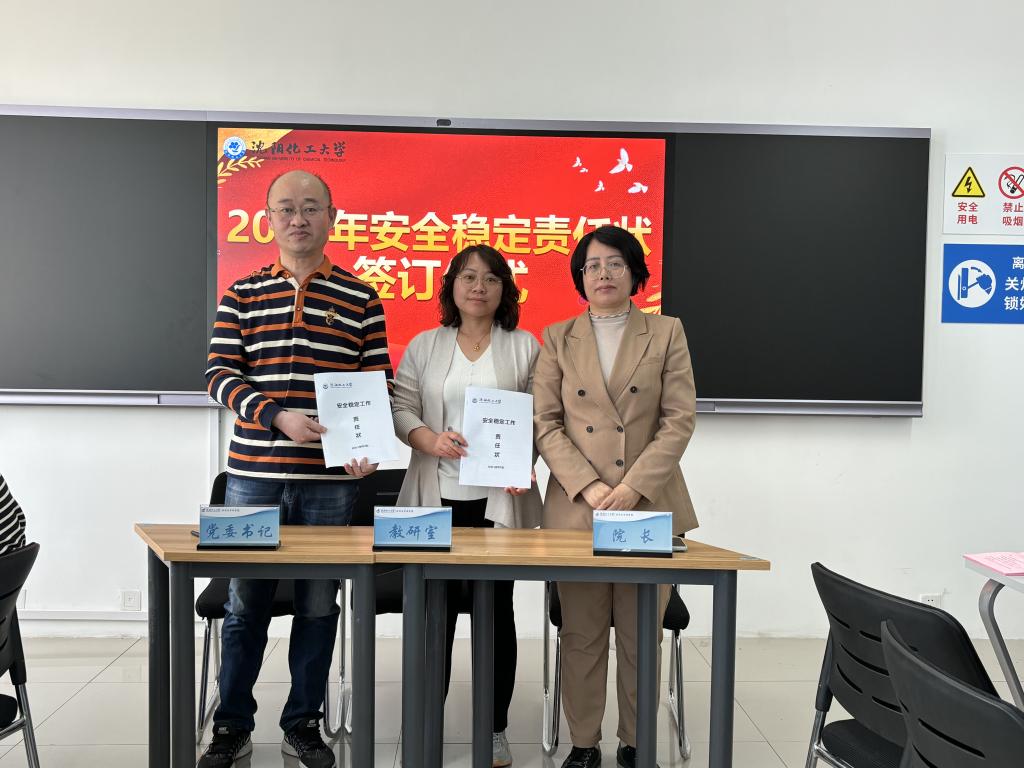 会上党委书记、院长与各教研室、实验中心签订了《太阳成集团tyc9728安全稳定责任状》,李丙文就全面贯彻落实学校2024年安全稳定会议精神提出要求,强调要牢固树立安全发展理念,强化底线思维、红线意识,夯实学院高质量发展的安全根基。要强化组织领导,学院领导班子同志要按照“一岗双责、党政同责、管业务必须管安全”的要求,落实好安全稳定主体责任。要常态化开展安全隐患排查整治,强化源头防护,细化管理措施,层层落实到人,用高质量的安全稳定工作保障学院各项事业高质量发展。