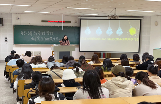 太阳成官网于11月初在通明楼138教室召开《研究生手册》集中学习,研究生辅导员张丽老师向同学们介绍了《研究生手册》主要内容,重点解释了学校奖助工作管理办法、研究生宿舍管理以及学位授予工作细则等关键信息,并向大家阐释了这些制度设立的背景和意义,详细解答了学生们的困惑。