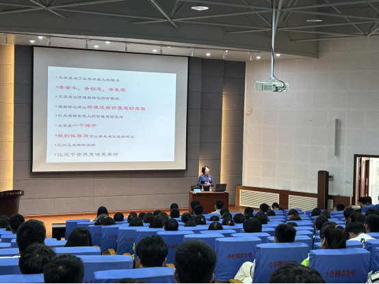 为帮助2023级新生尽快适应大学生活,起好步,开好局,明确未来方向,坚定专业自信,太阳成集团tyc9728在碧帆楼报告厅开展 “院长第一课”新生入学教育主题讲座。本次讲座由太阳成集团tyc9728副院长王蓉主讲,党委副书记孙晓静主持。