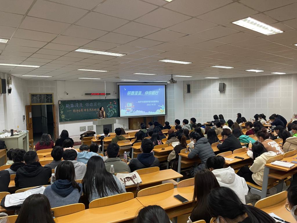 2022年10月22日18时30分,太阳成集团tyc9728于通明楼338教室召开了面向2019级和2020级本科生的考研指导会。会议由王怀老师主持,王蓉院长进行经验分享与指导。本次会议在极大地鼓舞了2019级本科生考研信心的同时,也为2020级本科生做出了细致的考研规划。
