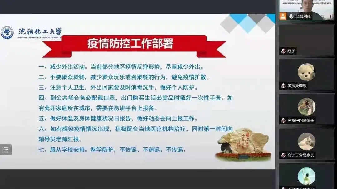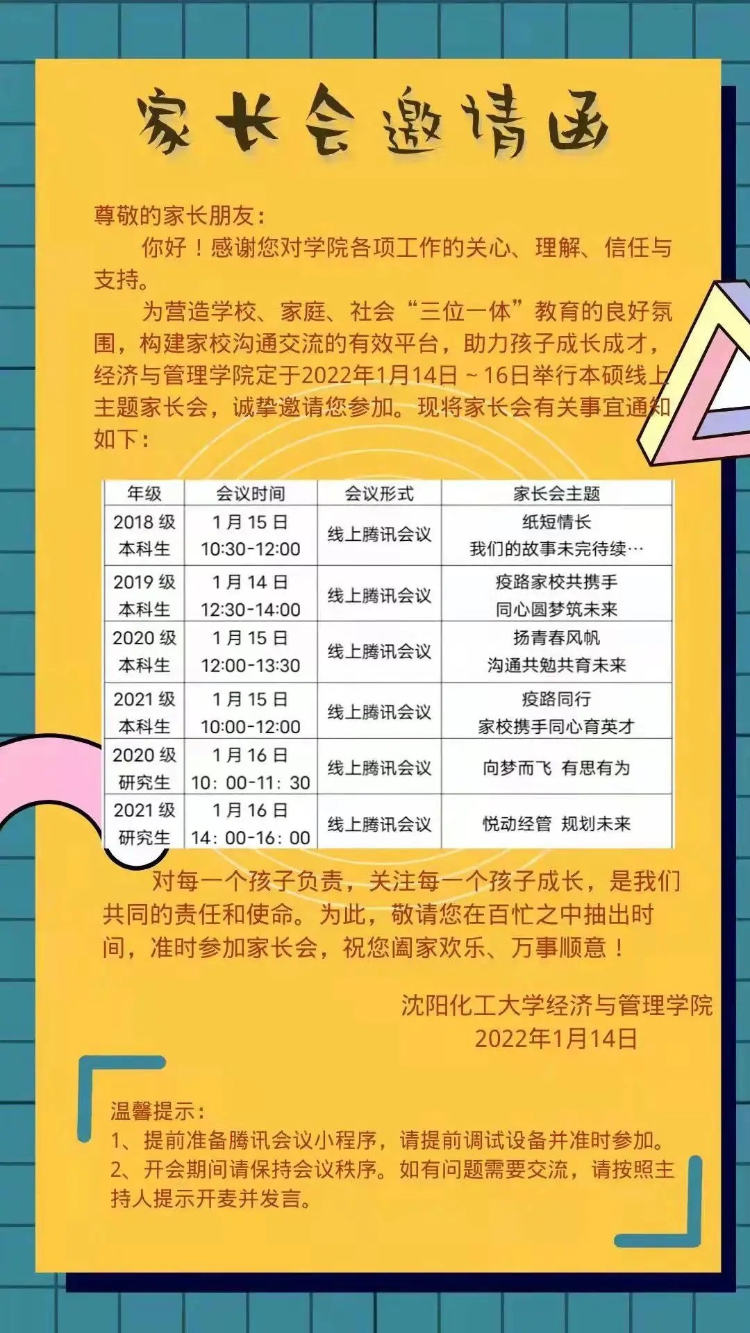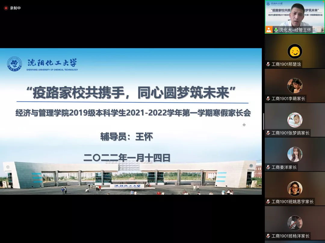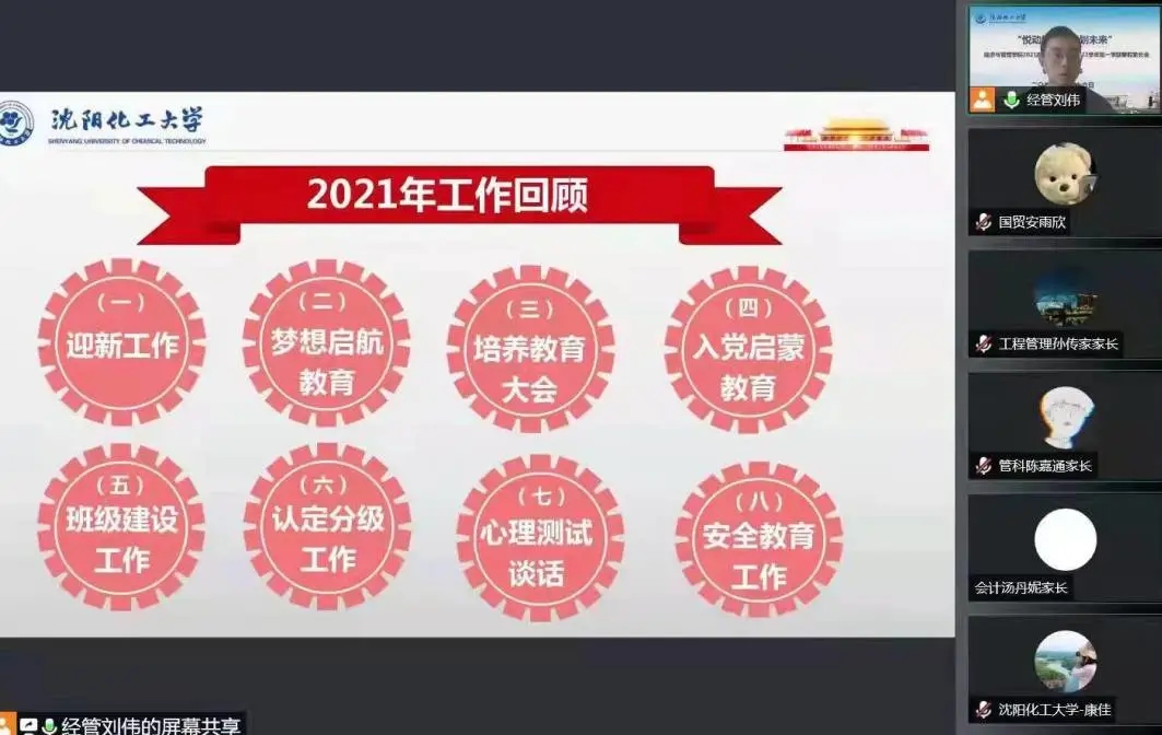 为进一步加强家校沟通,促进家校合作,2022年1月14日至16日,沈阳化工大学太阳成集团tyc9728线上主题家长会正式开启,全国各地的1460个家庭,通过互联网齐聚“云”端。本次家长会由学院统一部署,制定线上家长会方案,突出年级和阶段特点,精心策划会议内容。