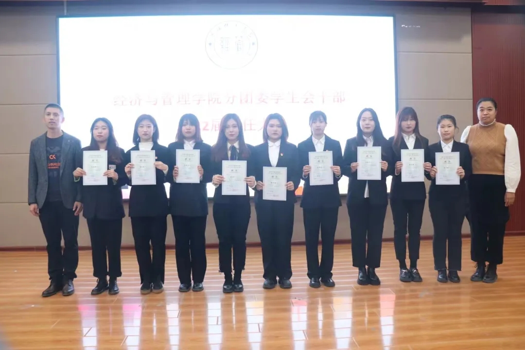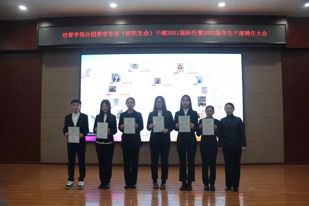 随后,进行的是分团委学生会学生干部2021届卸任暨2022届聘任大会。18级辅导员焦韦宣读2021届学生会干部卸任决定,党总支副书记孙晓静宣读2022届学生会干部聘任决定,学工办全体教师先后为受聘的学生干部颁发聘书。而后,孙晓静副书记作总结性发言,对新一届受聘学生干部提出新的期望和要求。